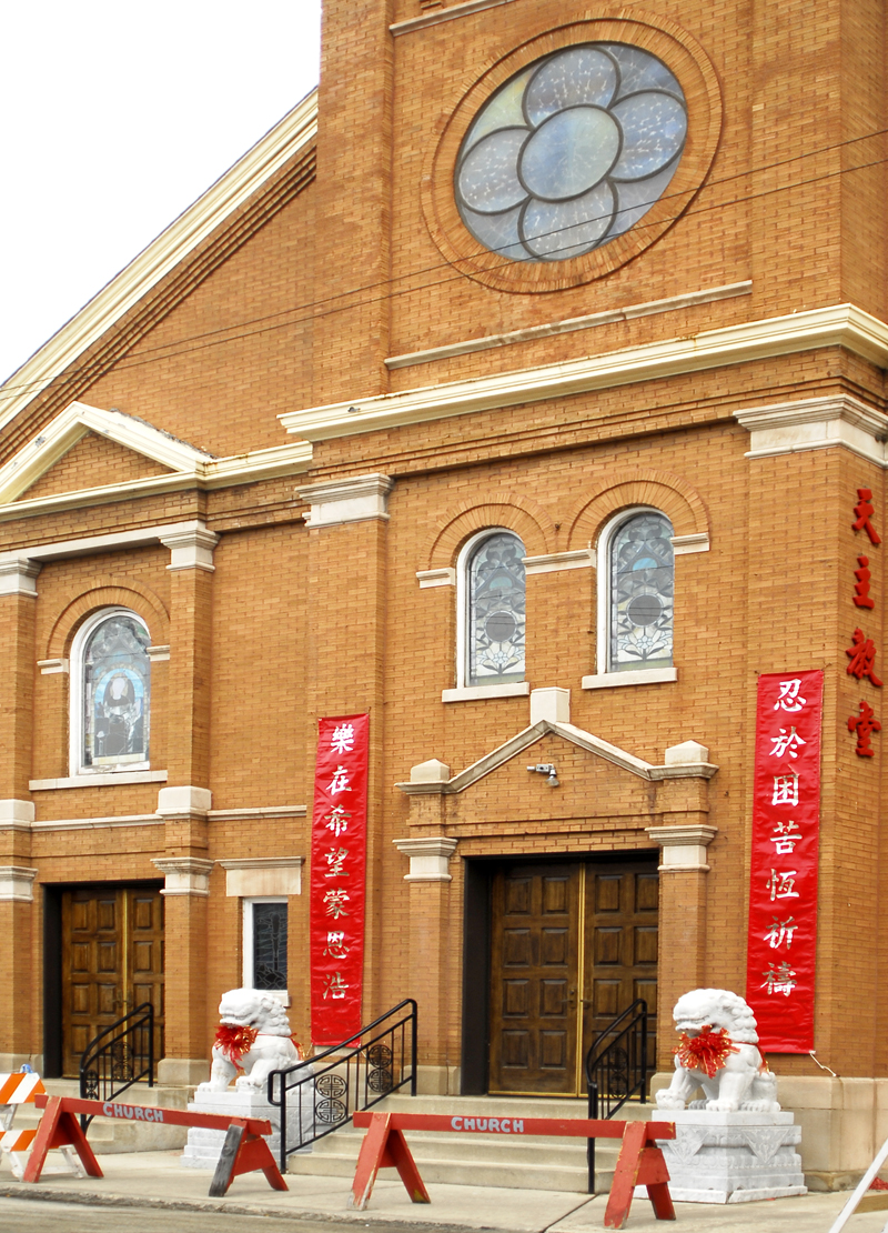 Hmmmmmmm…thought for a second I was on the west coast not the east. Love the glass work in the church tower. Do you ever go to Chinatown to eat? Bet you could get some really good egg rolls. Yum.