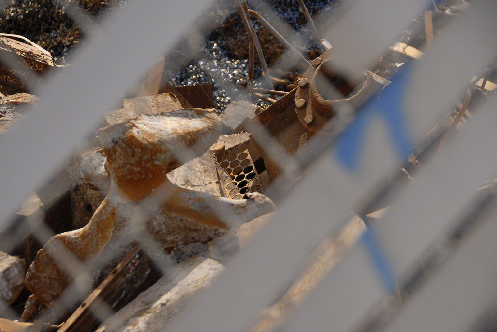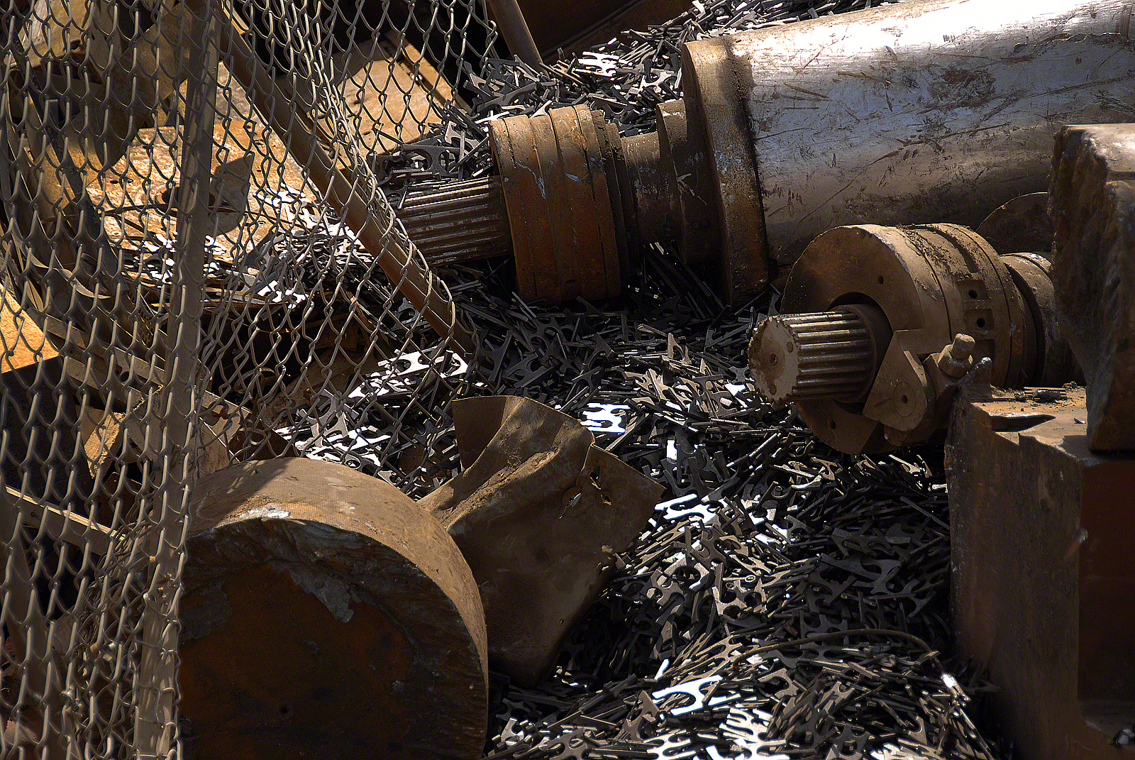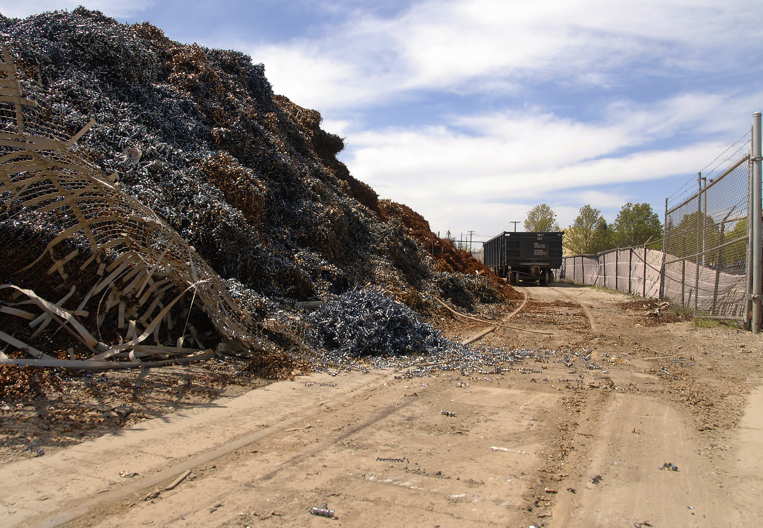 A. Finkl and Sons makes and forges steel in the city of Chicago. The company is committed to improving Chicago by reducing its solid waste output. 99.7% of the solid waste it produces is reused in the plant or repurposed. I found the varied shapes and textures of the metals to be attractive. Below are photographs of portions of their recycling yard.