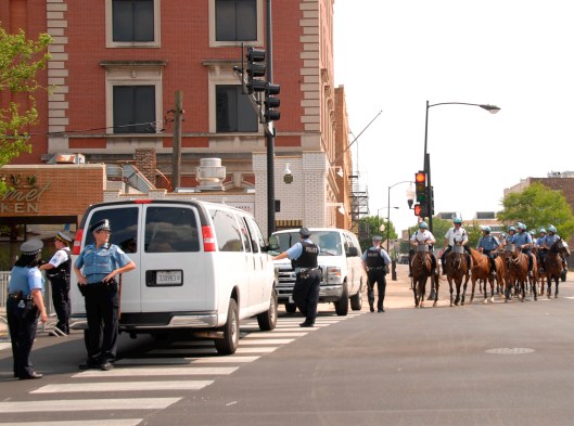As many of you know, the 2012 NATO summit was in Chicago this week. Leaders from around the world flew in to the Windy City to meet and discuss global changes. Various police departments, Homeland Security, and the Secret Service patrolled the streets. Stores, offices, television stations, and even coffee shops stepped up security measures. Some businesses even closed to avoid any possible chaos from protestors of the conference.