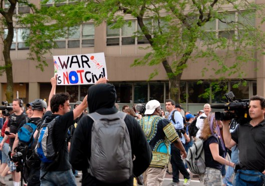 So, after a heated game of kickball, I decided to wander over Sunday to see what all the fuss was about. For the most part, the protests over four days were peaceful and organized. Thousands came to parade down the streets in the rally in hopes of having their voices heard. There were of course various incidents involving protestors getting incensed and eventually being arrested, but the majority complied with the officers along the parameters of the march.
